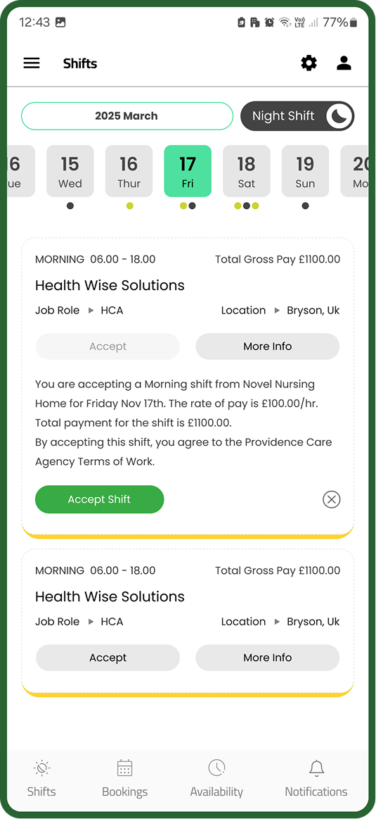 - Set the post-login landing page to Shifts, as this is where workers spend the majority of their time.